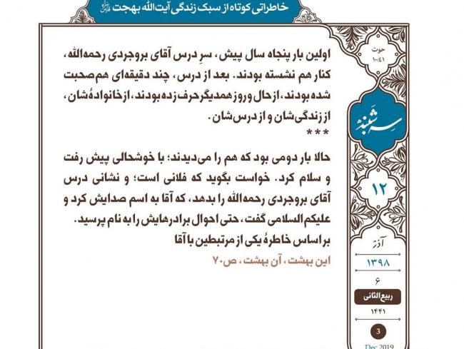 بر اساس خاطرۀ حجتالاسلام و المسلمین علی بهجت