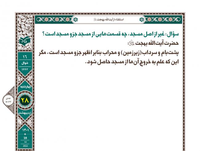 سؤال: غير از اصل مسجد، چه قسمتهايى از مسجد جزو مسجد است؟