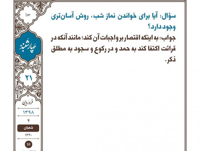 سوال : آیا برای خواندن نماز شب، روش راحتتری وجود دارد؟