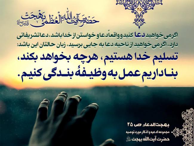 (برگرفته از کتاب بهجتالدعاء؛ مجموعه عبادات، ادعیه، اذکار و دستورالعملهای عبادی مورد سفارش حضرت آيتالله بهجت رحمهالله)