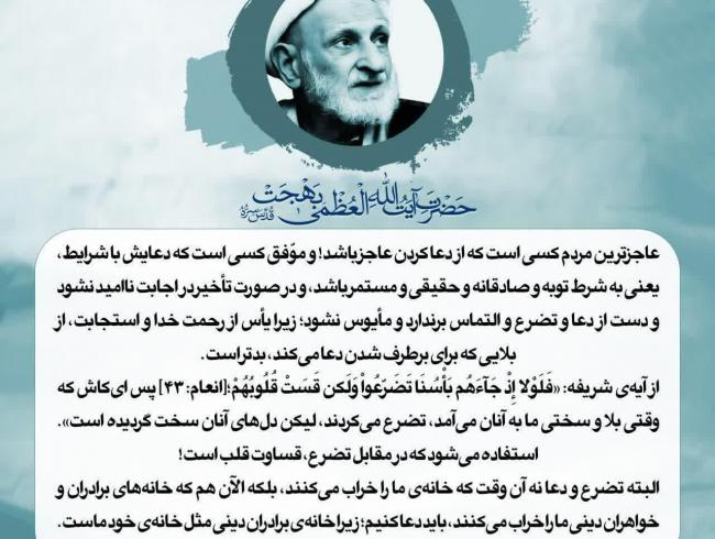 ترک صلوات و دعا کردن به دعاهای شخصی، مانند رها کردن سرچشمه و بهدنبال جوی آب و یا حوض گشتن است؛ زیرا وقتی برای وسعت مقام و درجه واسطه فیض دعا میشود، دعاهای شخصی هم در آن گنجانده شده است.