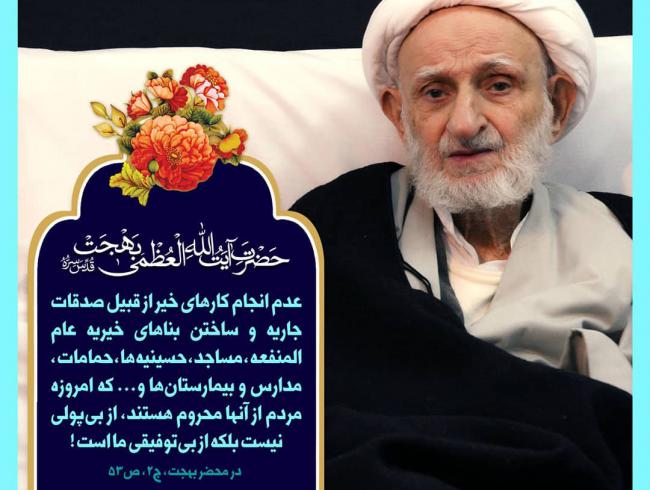 عدم انجام کارهای خیر از قبیل صدقات جاریه و ساختن بناهای خیریه عام المنفعه، مساجد، حسینیهها، حمامات، مدارس و بیمارستانها و... که امروزه مردم از آنها محروم هستند، از بیپولی نیست بلکه از بیتوفیقی ما است!
