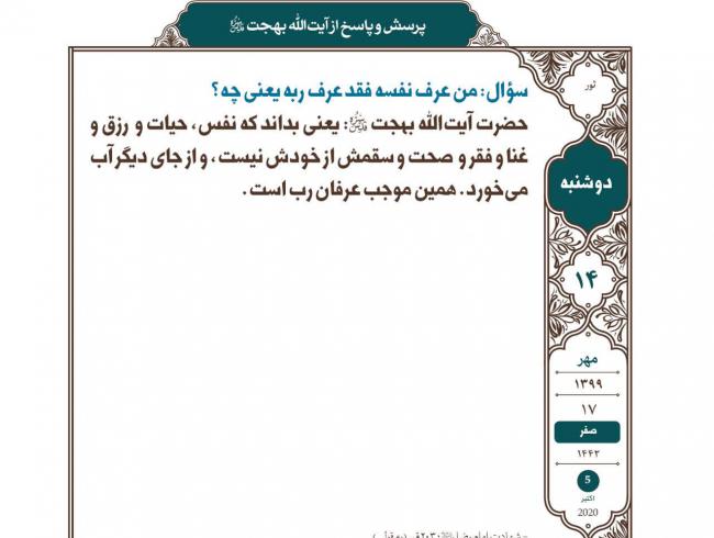 امام علی علیهالسلام هر کس بین خود و خدایش را اصلاح کند خداوند بین او و مردم را اصلاح خواهد کرد و کسی که امر آخرتش را اصلاح کند خداوند امر دنیایش را برایش به سامان میرساند.