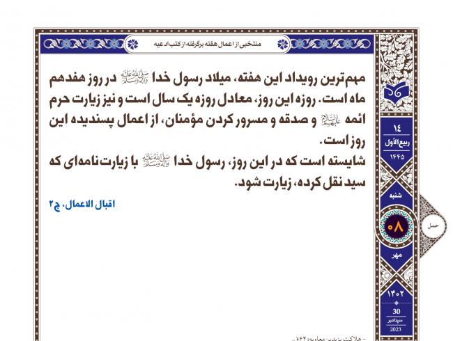 در شرف این ماه همین روایت کافی که رسول خدا صلیاللهعلیهوآله آن را برای خود اختیار کرده و هرکه او را در این ماه به روزهداری یاری ...