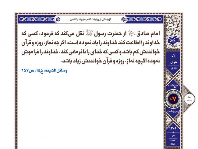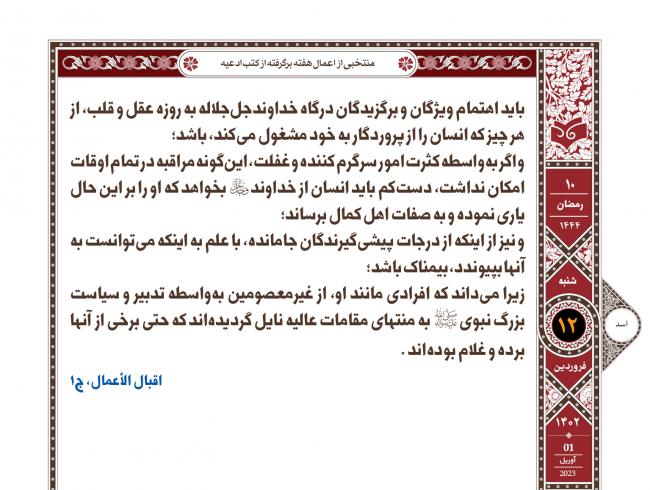 برگرفته از کتاب شریف اقبال الاعمال سیدبنطاووس، مورد توصیه حضرت آیت الله بهجت