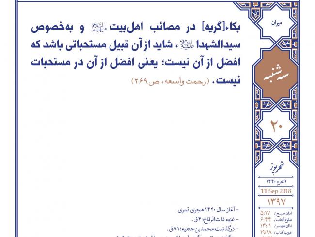 شرکت در مجالس سیدالشهدا علیهالسلام محبت به ذویالقربای پیامبر صلّیاللّهعلیهوآله است؛ همان ذویالقربای...