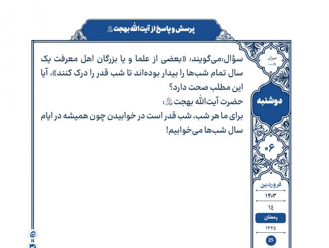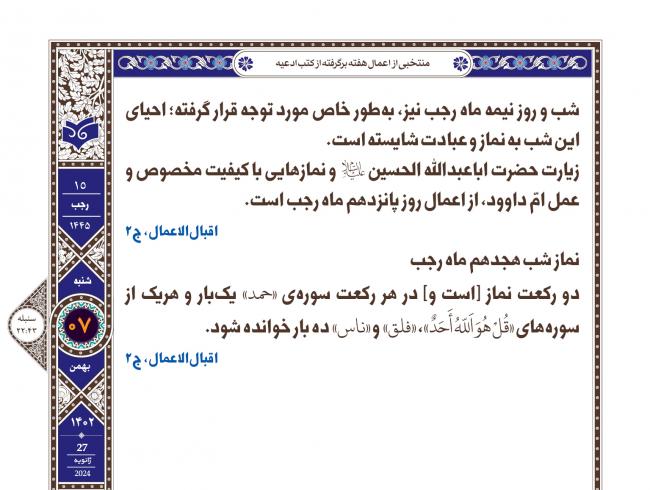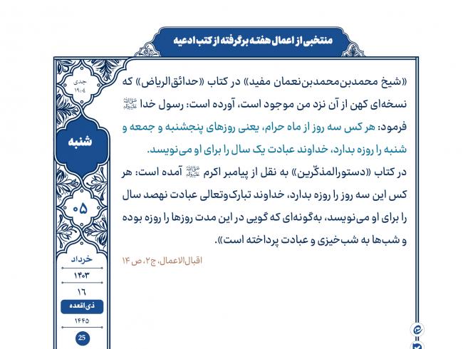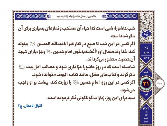 برگرفته از کتاب شریف اقبال الاعمال سیدبنطاووس، مورد توصیه حضرت آیت الله بهجت