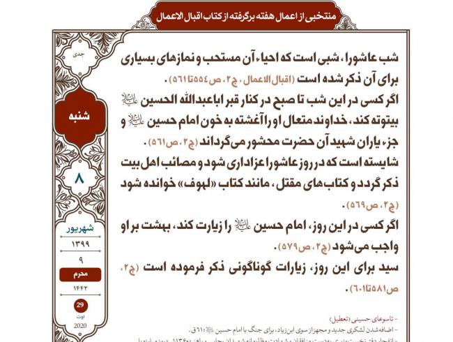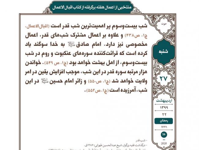برگرفته از کتاب شریف اقبال الاعمال سیدابن طاووس، مورد توصیه حضرت آیت الله بهجت