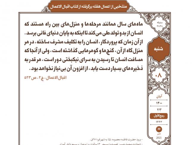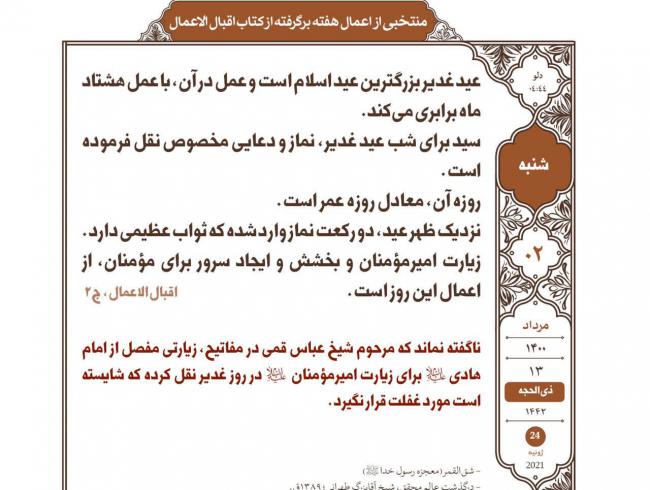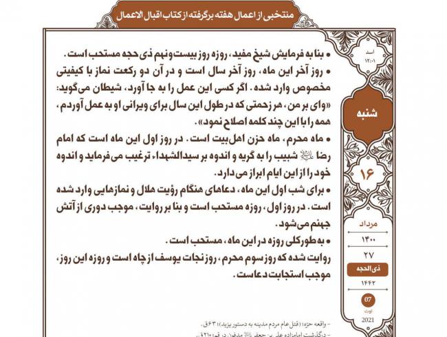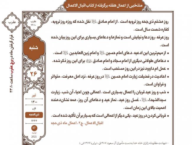 برگرفته از کتاب شریف اقبال الاعمال سیدابن طاووس، مورد توصیه حضرت آیت الله بهجت