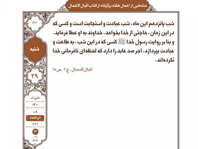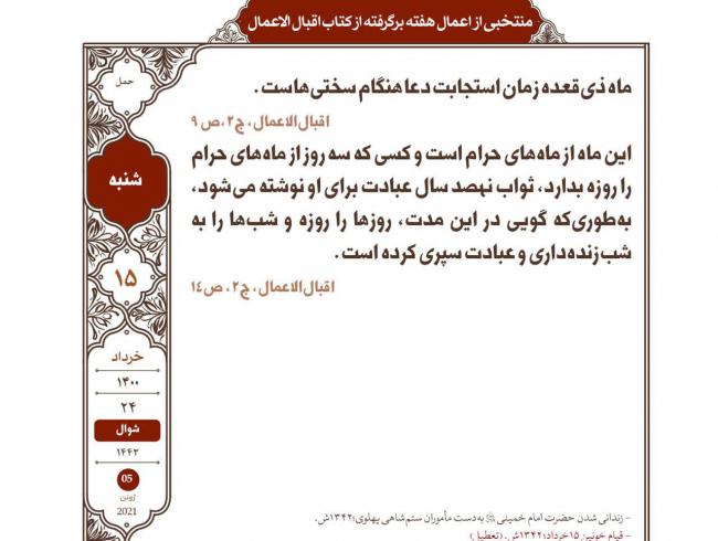 برگرفته از کتاب شریف اقبال الاعمال سیدابن طاووس، مورد توصیه حضرت آیت الله بهجت