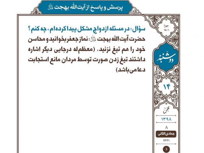 حضرت آیتالله بهجت قدسسره: بعد از نماز جعفر علیهالسلام برای هدایتش دعا کنید. و در سجده آخر برای این مقصد دعا نمائید و تباکی کنید (حالت گریه بگیرید).