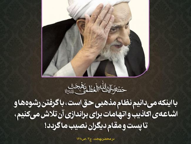 ... با اینکه میدانیم نظام مذهبی حق است، با گرفتن رشوهها و اشاعهی اکاذیب و اتهامات برای براندازی آن تلاش میکنیم، تا پست و مقام دیگران نصیب ما گردد!