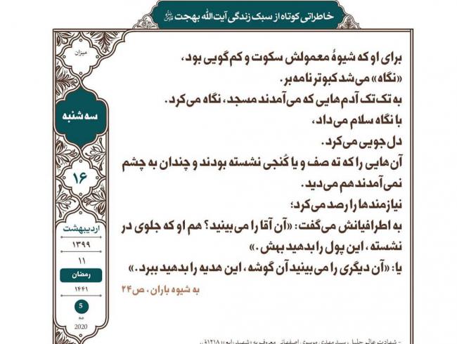 بر اساس خاطرۀ حجت‌الاسلام و المسلمین علی بهجت