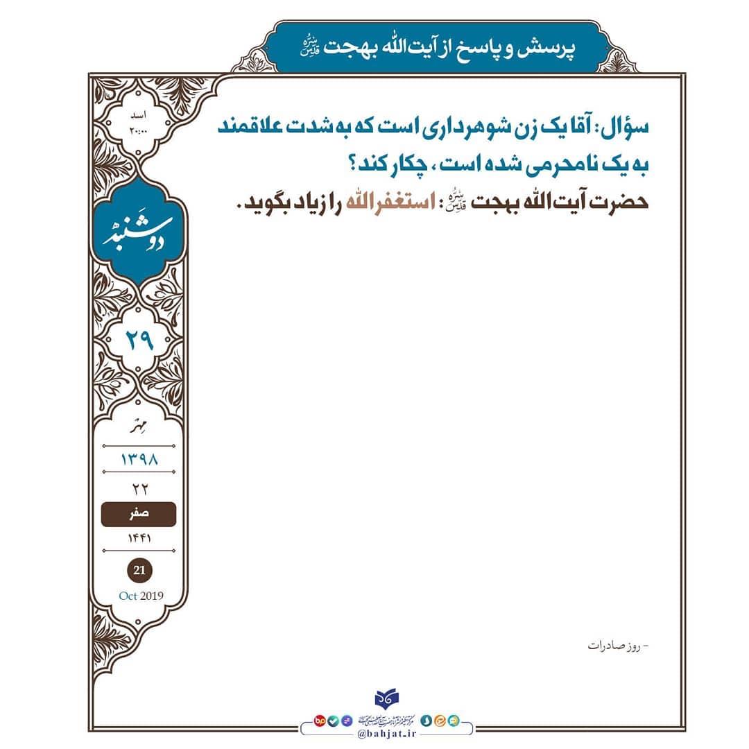 سؤال: آقا یک زن شوهرداری است که به‌شدت علاقمند به یک نامحرمی شده است، چکار کند؟