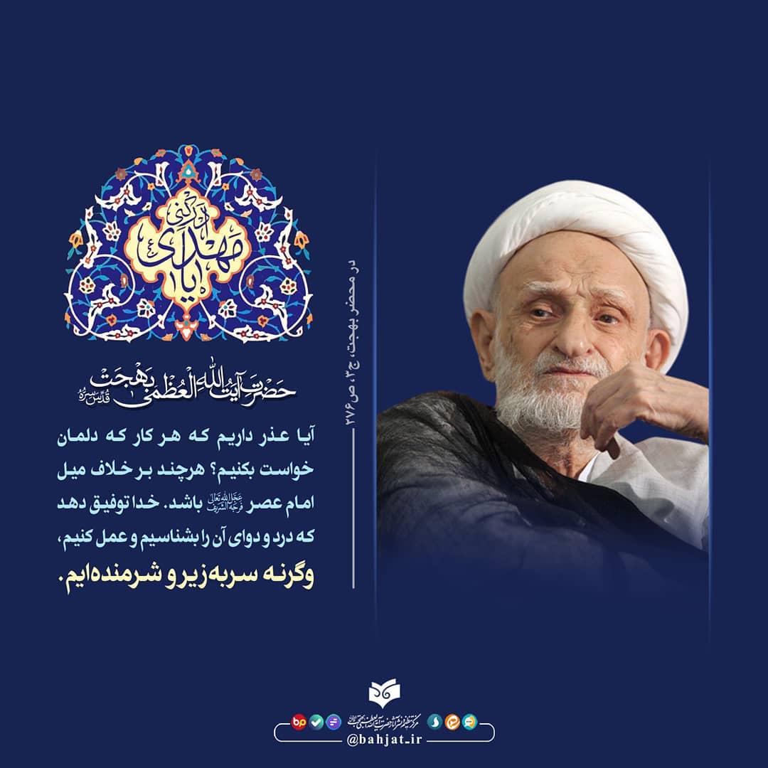 آیا عذر داریم که هر کار که دلمان خواست بکنیم؟ هرچند بر خلاف میل امام عصر عجل‌الله‌تعالی‌فرجه‌الشریف باشد. خدا توفیق دهد که درد و دوای آن را بشناسیم و عمل کنیم، وگرنه سربه‌زیر و شرمنده‌‏ایم.