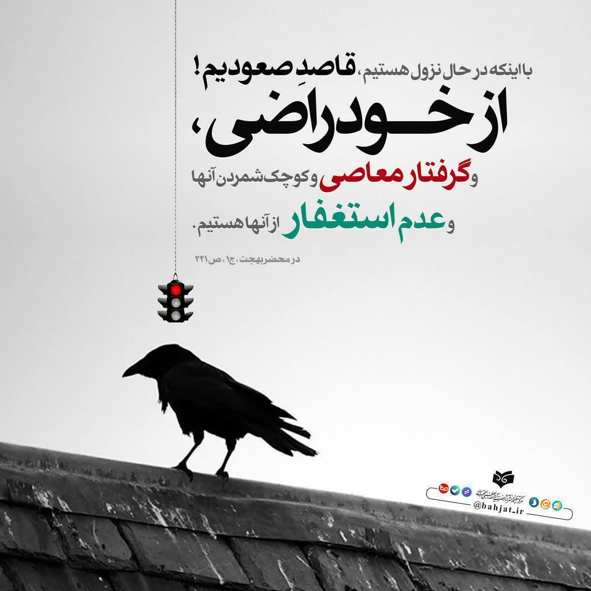 با اینکه در حال نزول هستیم، قاصدِ صعودیم! و از خود راضی، و گرفتار معاصی و کوچک‌شمردن آنها و عدم استغفار از آنها هستیم.