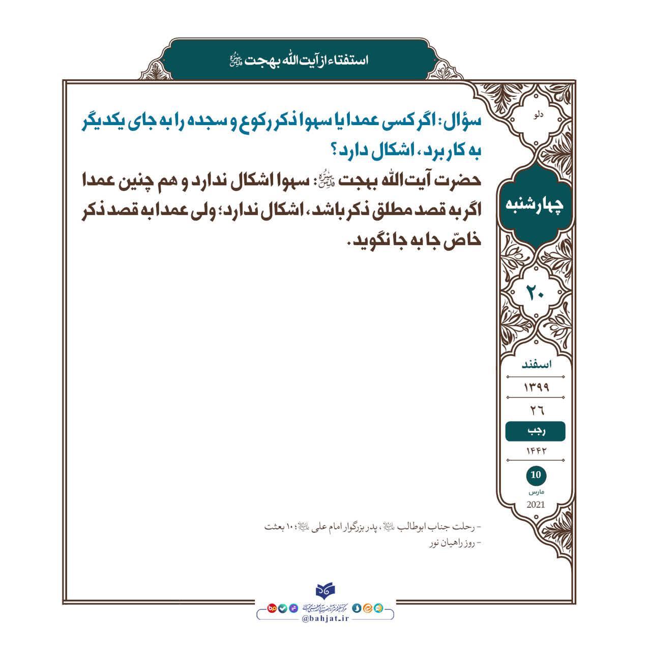 سؤال: اگر کسى عمدا يا سهوا ذکر رکوع و سجده را به جاى يکديگر به کار برد، اشکال دارد؟