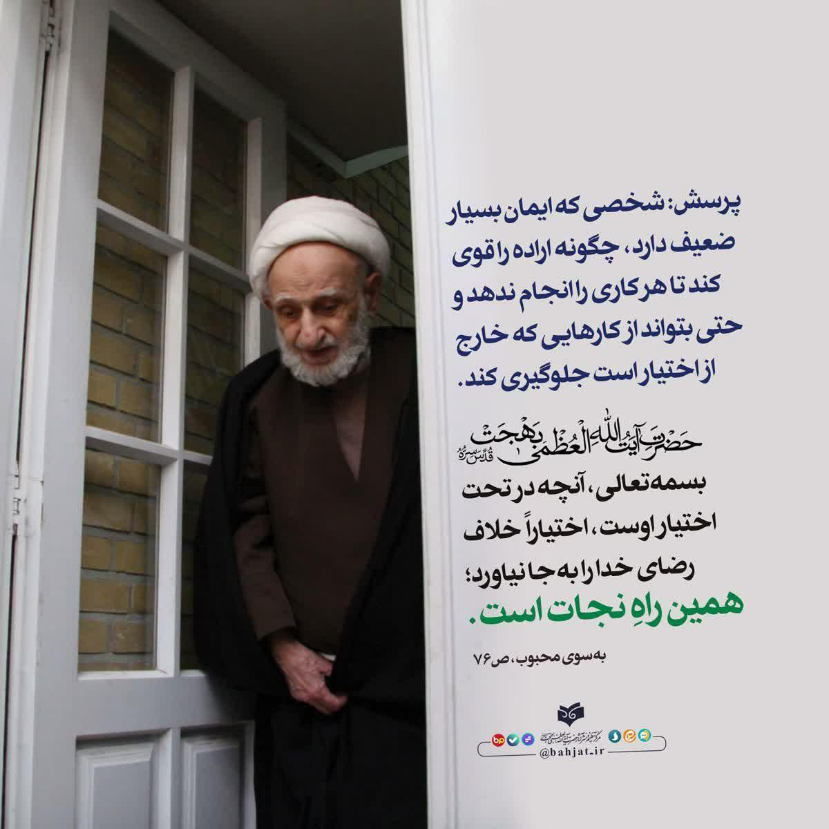 پرسش: شخصی که ایمان بسیار ضعیف دارد، چگونه اراده را قوی کند تا هر کاری را انجام ندهد و حتی بتواند از کارهایی که خارج از اختیار است جلوگیری کند.