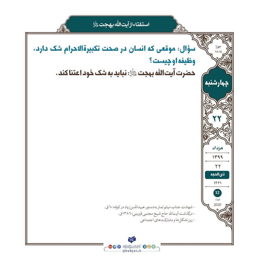 حضرت آیت‌الله بهجت قدس‌سره: نبايد به شک خود اعتنا کند.