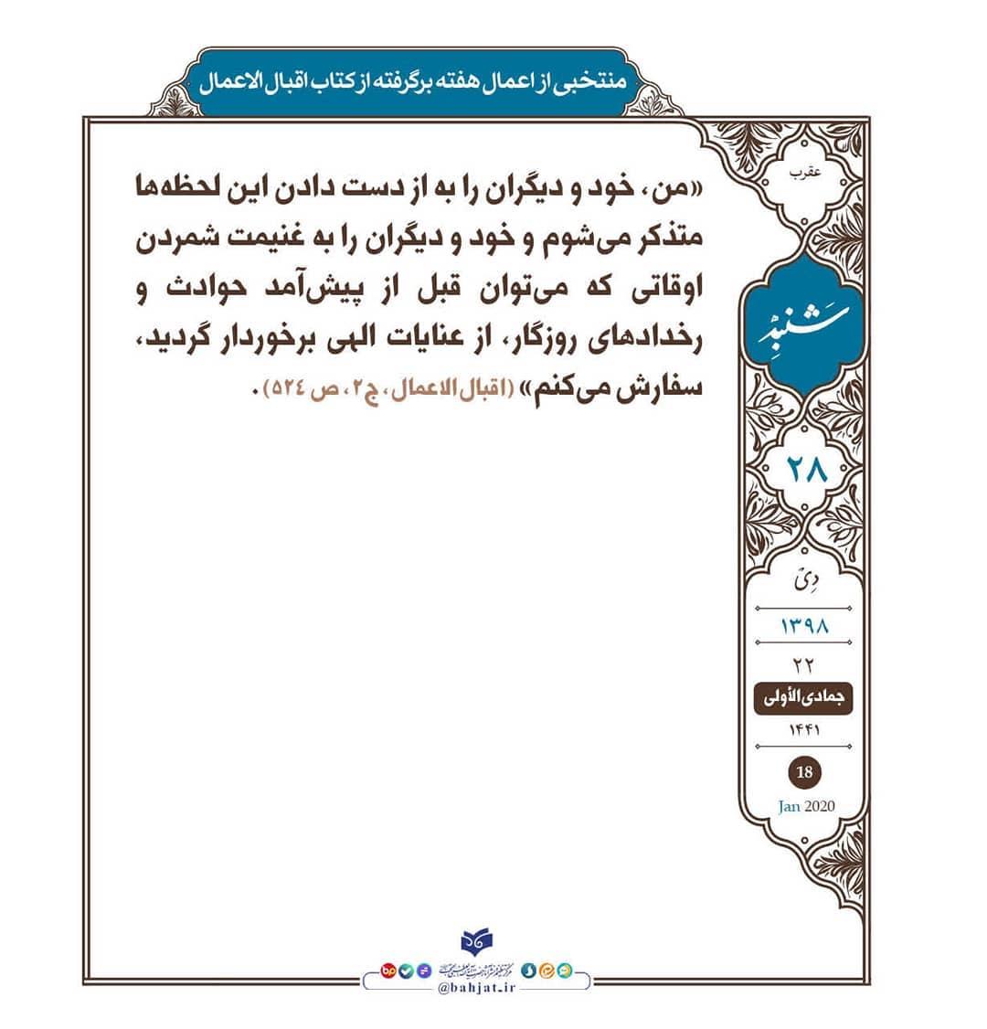 برگرفته از کتاب شریف اقبال الاعمال سیدابن طاووس، مورد توصیه حضرت آیت الله بهجت