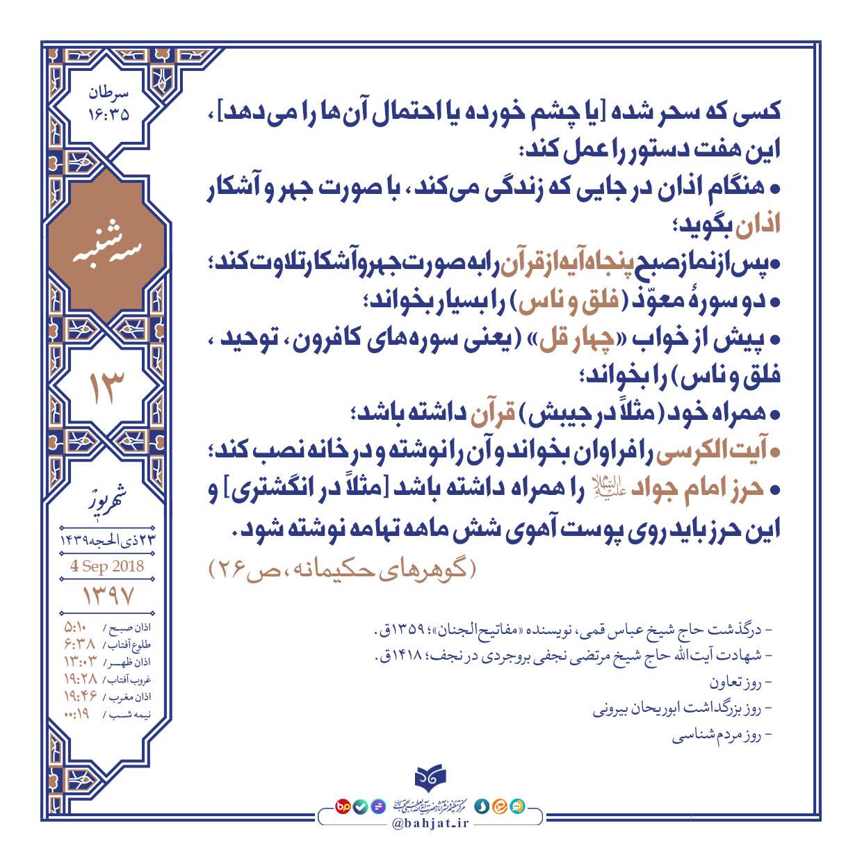 آیتالکرسی را فراوان بخواند و ان را نوشته در خانه نصب کند؛