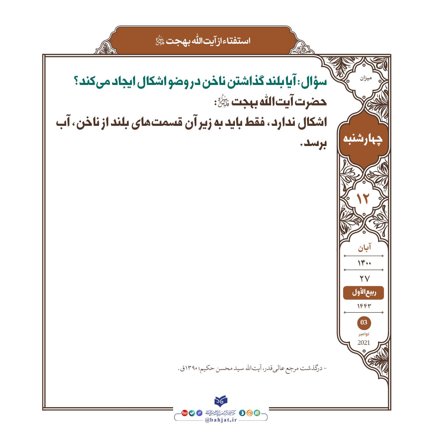 سؤال: آيا بلند گذاشتن ناخن در وضو اشکال ايجاد مى‌کند؟