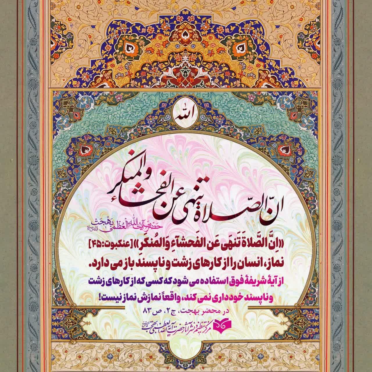 از آیۀ شریفۀ [اِنَّ الصَّلاةَ تَنهَی عَن الفَحشآءِ وَالمُنکَرِ نماز، انسان را از کارهای زشت و ناپسند باز می دارد.] (عنکبوت:۴۵)