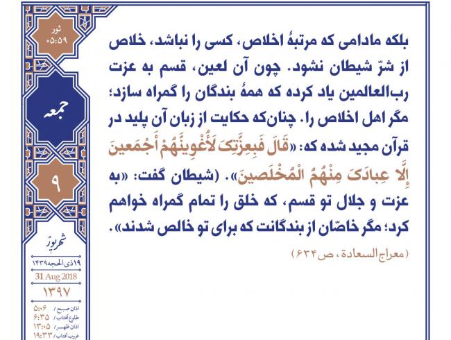 [نفاق و دورویی] و مراد از آن در این مقام، دورویی و دو زبانی است؛ بهاینطریق که در حضور کسی، او را مدح و ستایش کنی، و اظهار دوستی و نیکخواهی نمایی؛ و در غیاب او، برخلاف آن باشی، و مذمّت او کنی و در صدد اذیت او باشی. یا آنکه میان دو نفر که با یکدیگر دشمناند، آمد و شد نمایی و با هریک در دشمنی دیگری،...