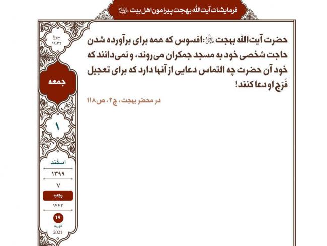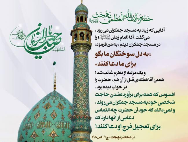 زیاد صلوات اهدای وجود مقدسش نمایید، مقرون با دعای تعجیل فرجش و زیاد به مسجد جمکران مشرف شوید با ادای نمازهایش...