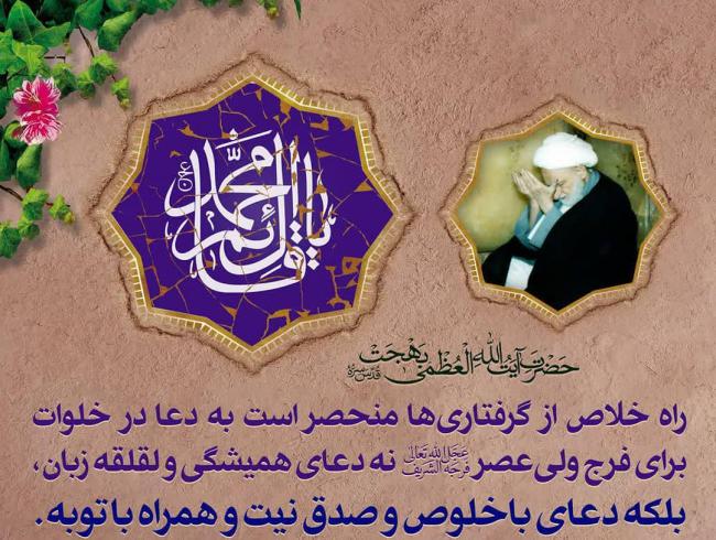 راه خلاص از گرفتاریها منحصر است به دعا در خلوات برای فرج ولیعصر(عج) نه دعای همیشگی و لقلقه زبان، بلکه دعای باخلوص و صدق نیت و همراه با توبه.