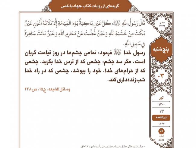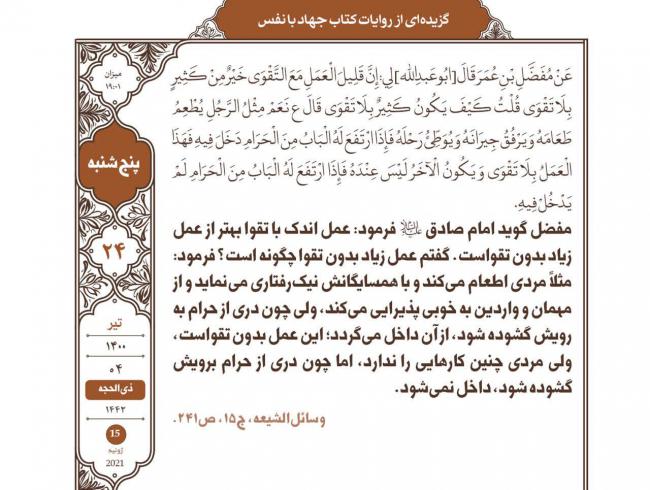 انسان هر راهی را بدون تقید و پایبندی به قرآن و سنت برود، روزبهروز تنزّل میکند و تاریخ، از جمله قضایای سقیفه و پیامدهای آن مانند واقعه طَف (کربلا)، هر روز تکرار میشود؛ زیرا هر روز حقی غصب و یا احقاق میشود، و همیشه حق و باطل مثل حسین و یزید وجود دارد، و کار مردم هم یا ...