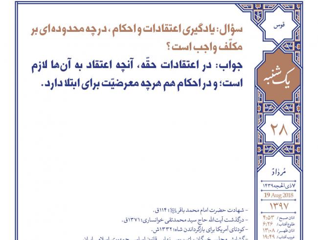 سؤال: يادگيرى اعتقادات و احكام، در چه محدودهاى بر مكلّف واجب است؟