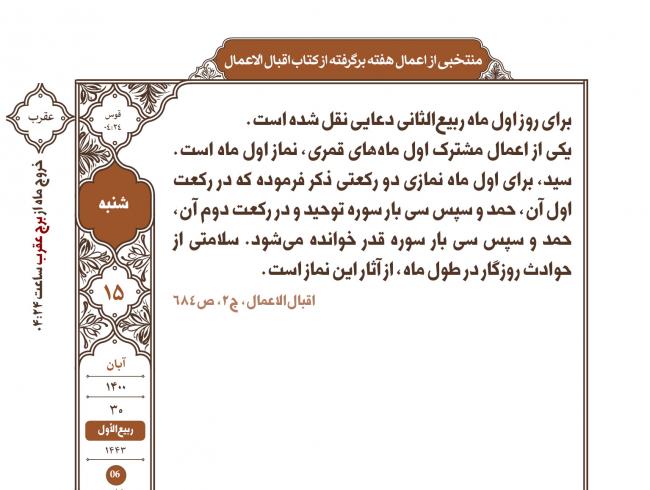 برگرفته از کتاب شریف اقبال الاعمال سیدابن طاووس، مورد توصیه حضرت آیت الله بهجت